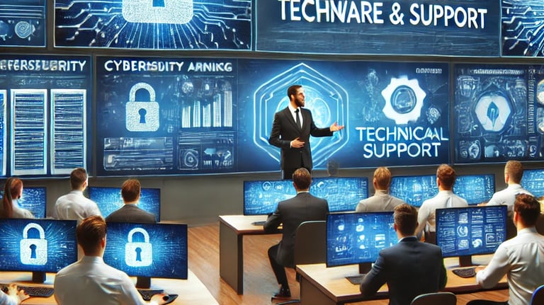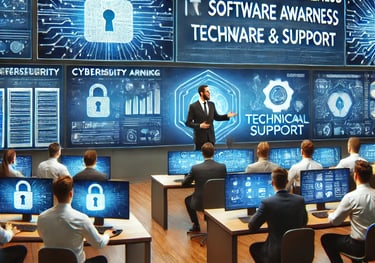 provides technical education and assistance to enhance IT skills, improve security awareness, and ensure smooth system operations. It includes employee training, troubleshooting, and software guidance.
